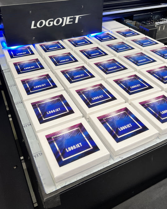LogoJET custom trays support real-world promotional workflows by standardizing product placement and setup. This reduces handling time, improves accuracy, and keeps production moving efficiently—job after job.
